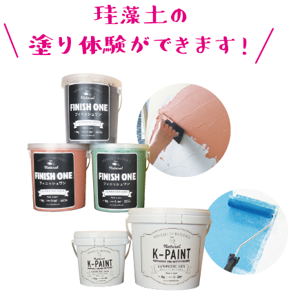 無料「塗り体験」ができますので珪藻土の良さを体感してください!